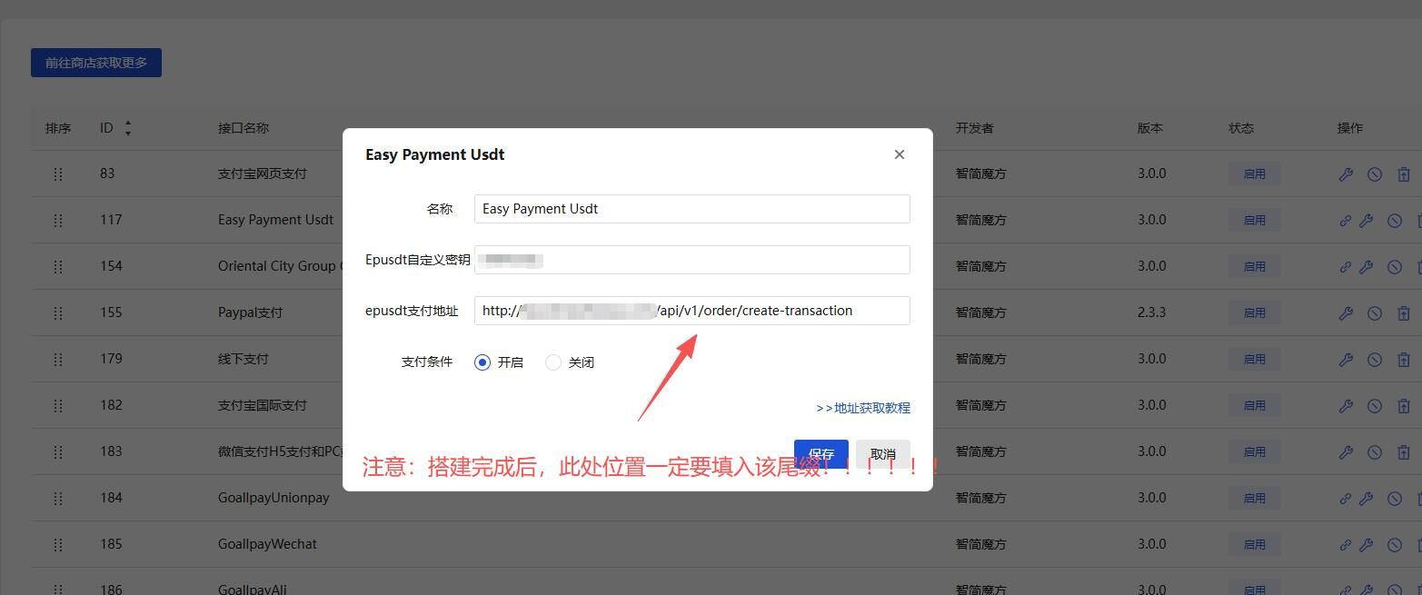 1.使用前置:业务系统--->应用--->插件列表--->下载 EasyUSDT